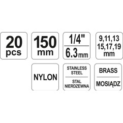 Jeu de brosses pour douilles à bougies, 20 pcs YATO YAT YT-08195